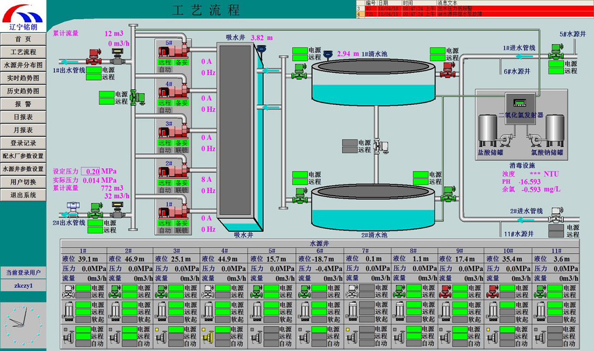 控制系統(tǒng)對(duì)凈水廠所有工藝參數(shù)進(jìn)行在線監(jiān)控,實(shí)現(xiàn)凈水廠供水設(shè)備的自動(dòng)化控制,確保供水安全可靠。對(duì)供水系統(tǒng)關(guān)鍵部位實(shí)時(shí)視頻監(jiān)控,提高安全防護(hù)水平,實(shí)現(xiàn)供水管網(wǎng)至客戶端的水質(zhì)、水壓在線監(jiān)控、******實(shí)時(shí)監(jiān)控,從而為實(shí)現(xiàn)從水源、水廠、管網(wǎng)和二次加壓泵站聯(lián)合調(diào)度提供實(shí)時(shí)數(shù)據(jù)依據(jù)。