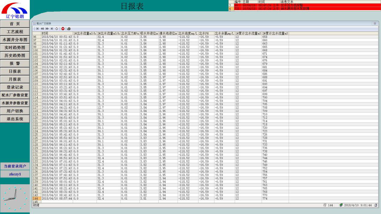 系統(tǒng)自動(dòng)記錄各種工藝運(yùn)行數(shù)據(jù),將所有數(shù)據(jù)歸納匯總形成報(bào)表,報(bào)表可定時(shí)打印或召喚打印,操作員也可通過菜單或按鈕進(jìn)入報(bào)表畫面查看歷史報(bào)表。