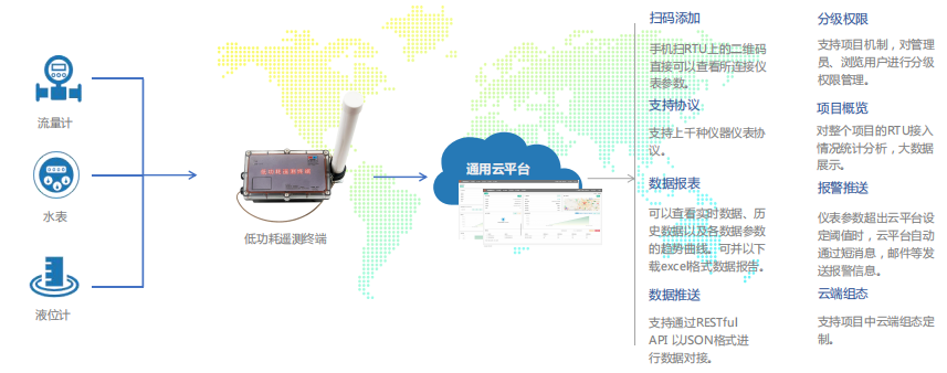 低功耗遙測終端具備IP68保護(hù)級別,內(nèi)部大容量鋰電池供電,應(yīng)用于現(xiàn)場無供電且有浸水可能性的場景中,與通用 云平臺聯(lián)合使用,可對儀器儀表設(shè)備進(jìn)行集中數(shù)據(jù)查看、配置、診斷、維護(hù)、管控。掃碼即可,方便易用。